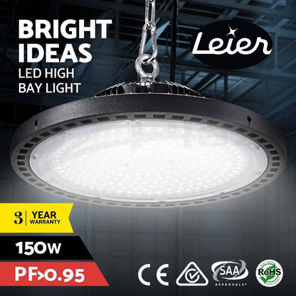 Our Leier LED High Bay Lights are perfectly suited for warehouses, showrooms, supermarkets or any commercial building with high ceilings. The 3030 LED light chips are provided by Epistar and the built-in constant current IC driver is packed with performance optimisation technology such as monitored temperature, voltage, current and circuit stability.