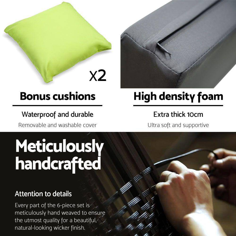 Made of heavy-duty aluminium frame and UV resistant PE wicker, the furniture set is