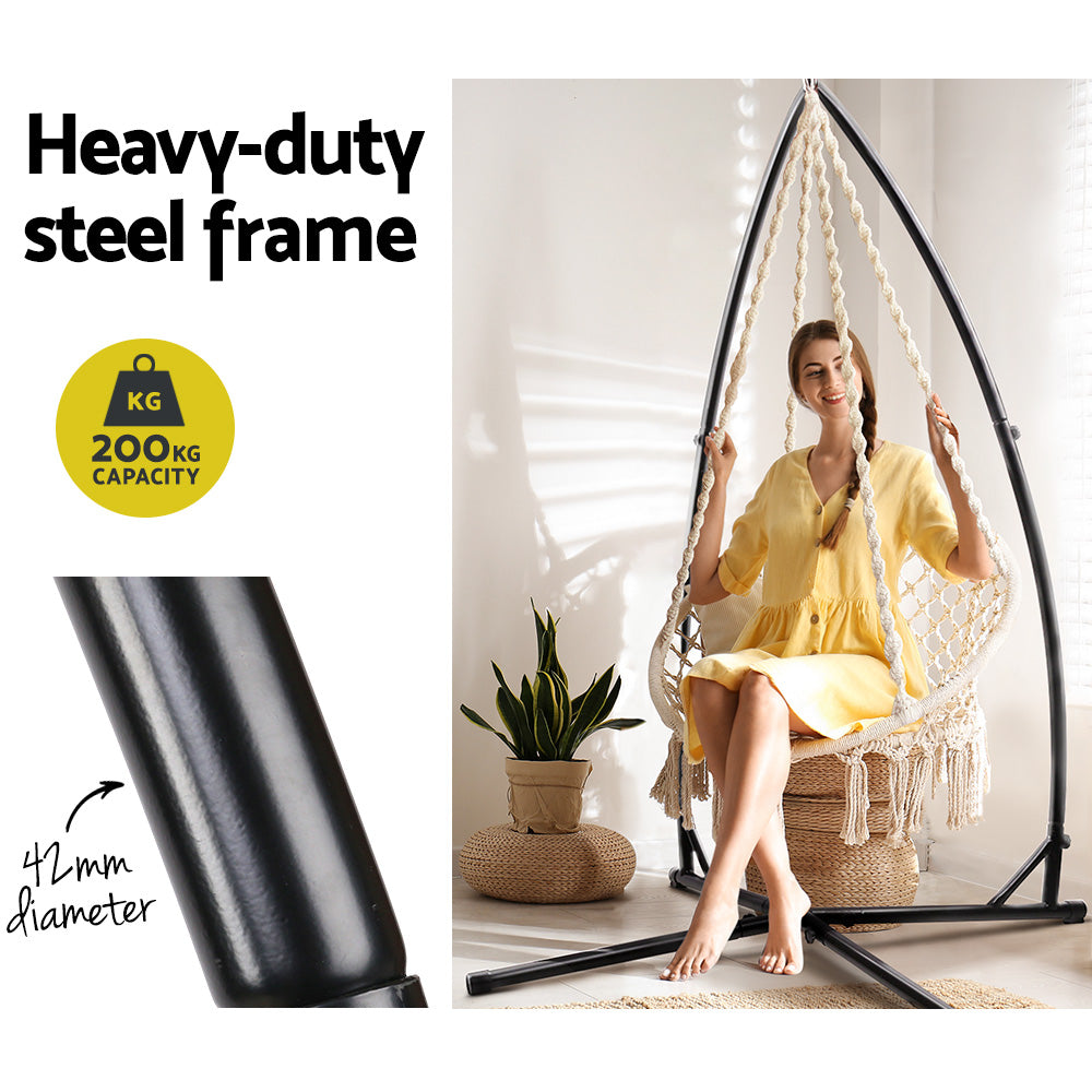 Gardeon Outdoor Hammock Chair with Steel Stand Cotton Swing Hanging 124CM Cream