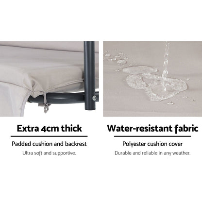 Gardeon Outdoor Swing Chair Garden Chair Bench Furniture Canopy 3 Seater Beige