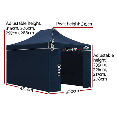 Gazebo Pop Up Marquee 3x4.5m Folding-Navy