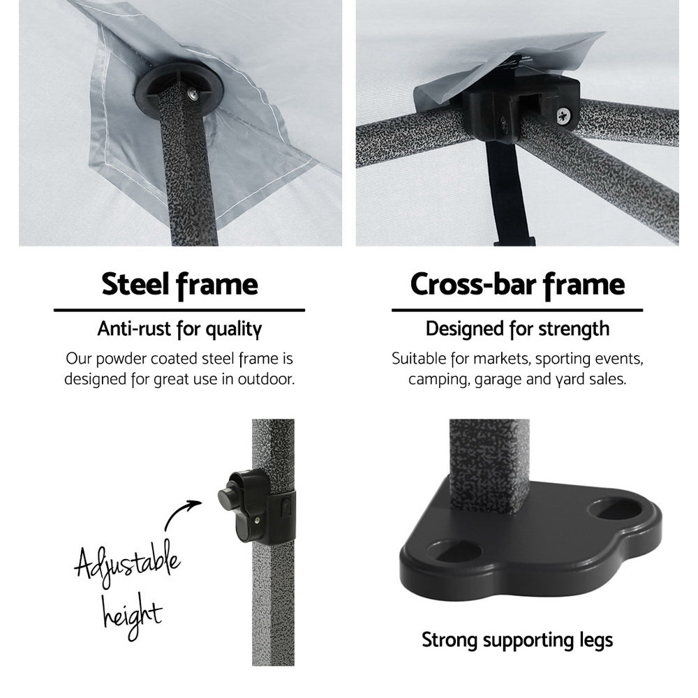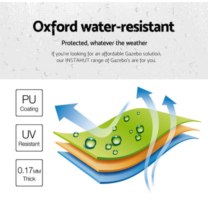 IWhether in your garden, at an outdoor BBQ or sports event, on a vacation, or at a market, the Instahut Pop-up Gazebo is the perfect solution for instant outdoor cover. At 300cm by 600cm, the durable PU-coated oxford fabric provides a wide roof coverage and is resistant to both UV rays and water. Stay comfortable and protected from the elements so you can enjoy your event without worry. Don't let rain or UV radiation ruin your day with ample dry coverage and protection.