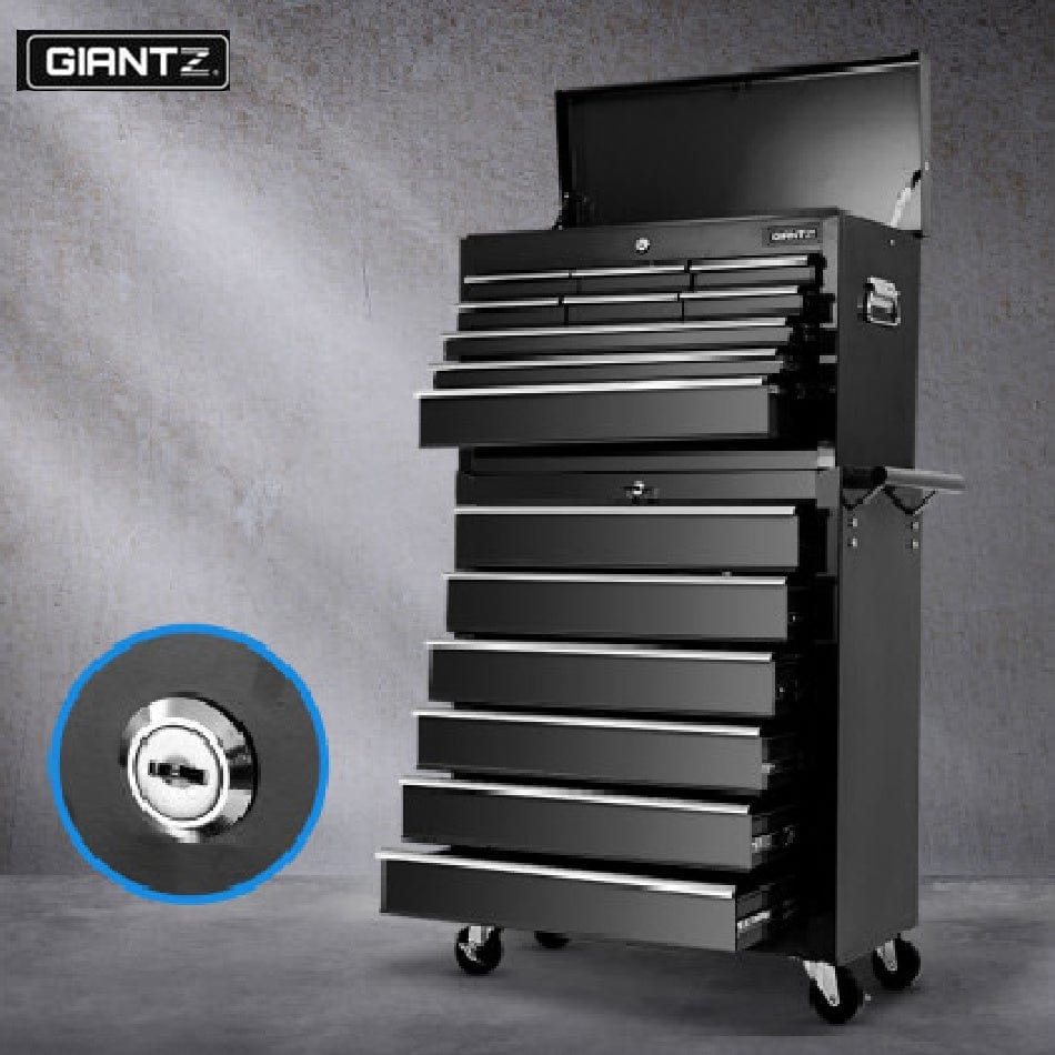 15 Drawers Tool Box Chest Trolley Cabinet Garage Storage Boxes Organizer Black
