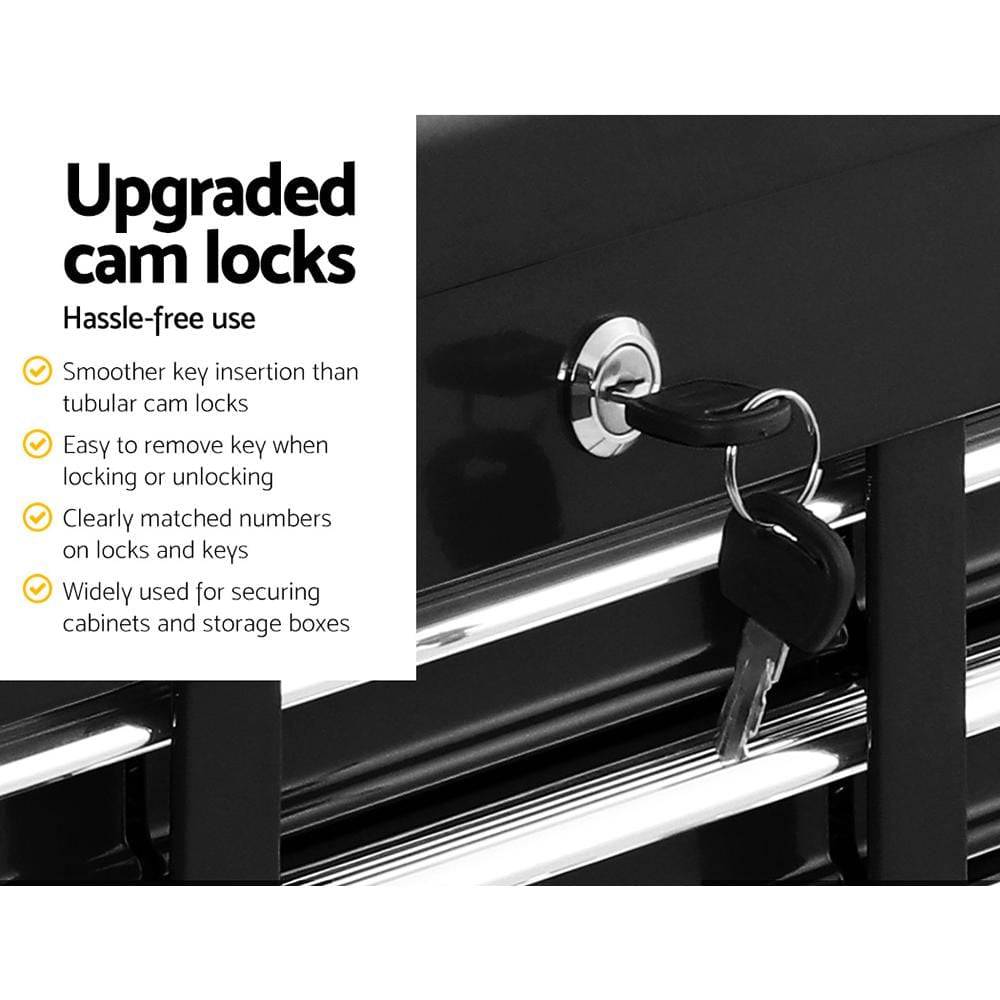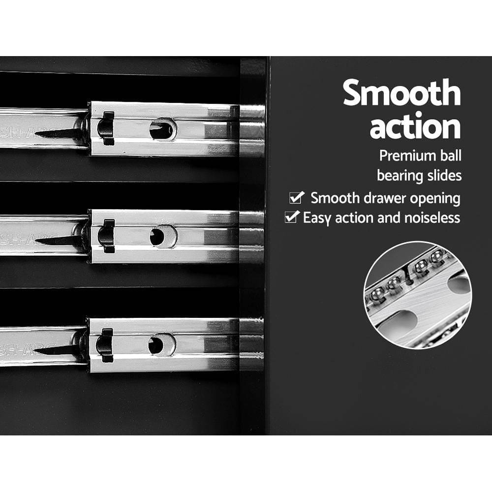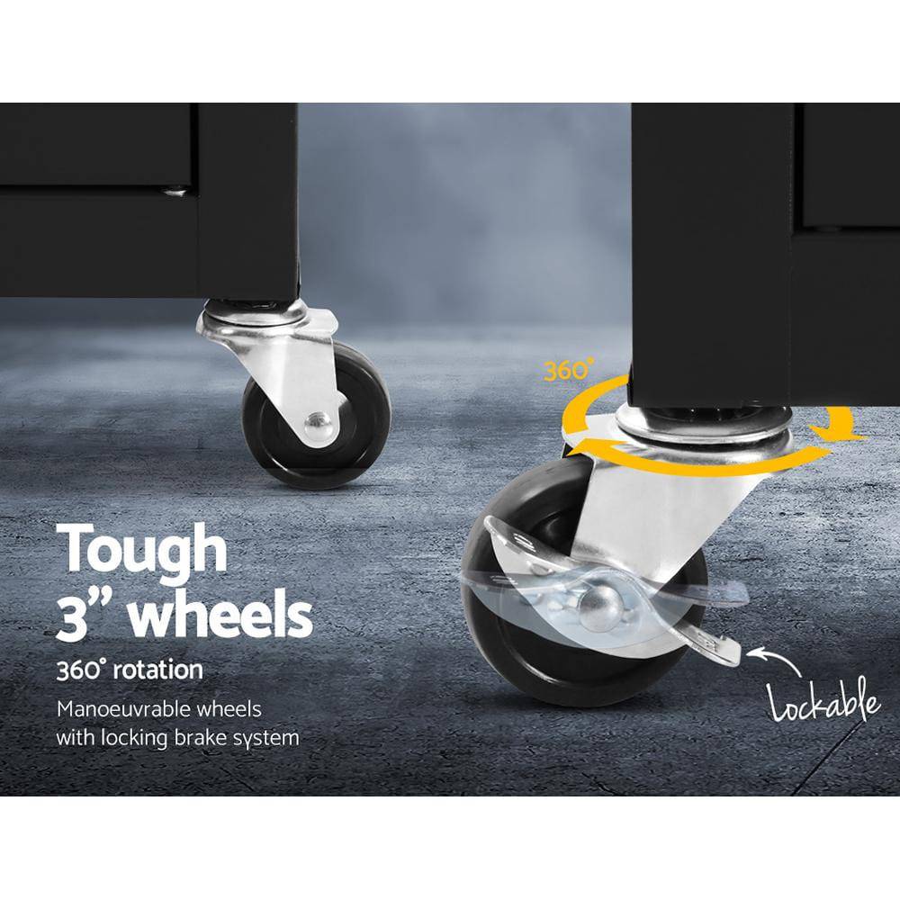 Made from high tensile powder-coated steel, the Giantz Tool Chest and Trolley is built to keep your precious tools in their proper place with drawers that are specifically designed to cater to various tool sizes.