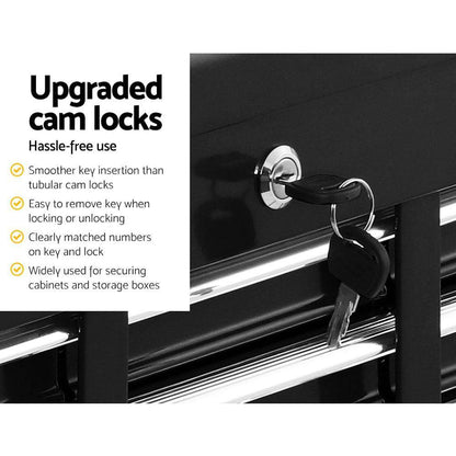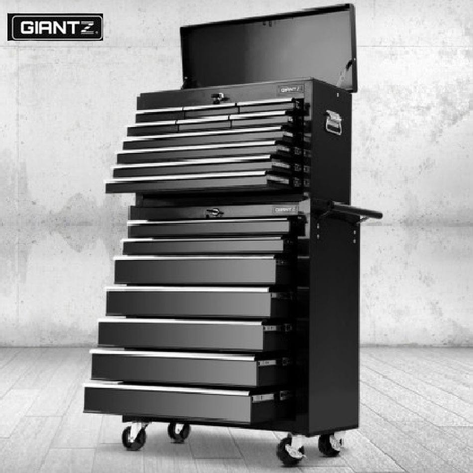 17 Drawers Tool Box Trolley Chest Cabinet Cart Garage Mechanic Toolbox Black