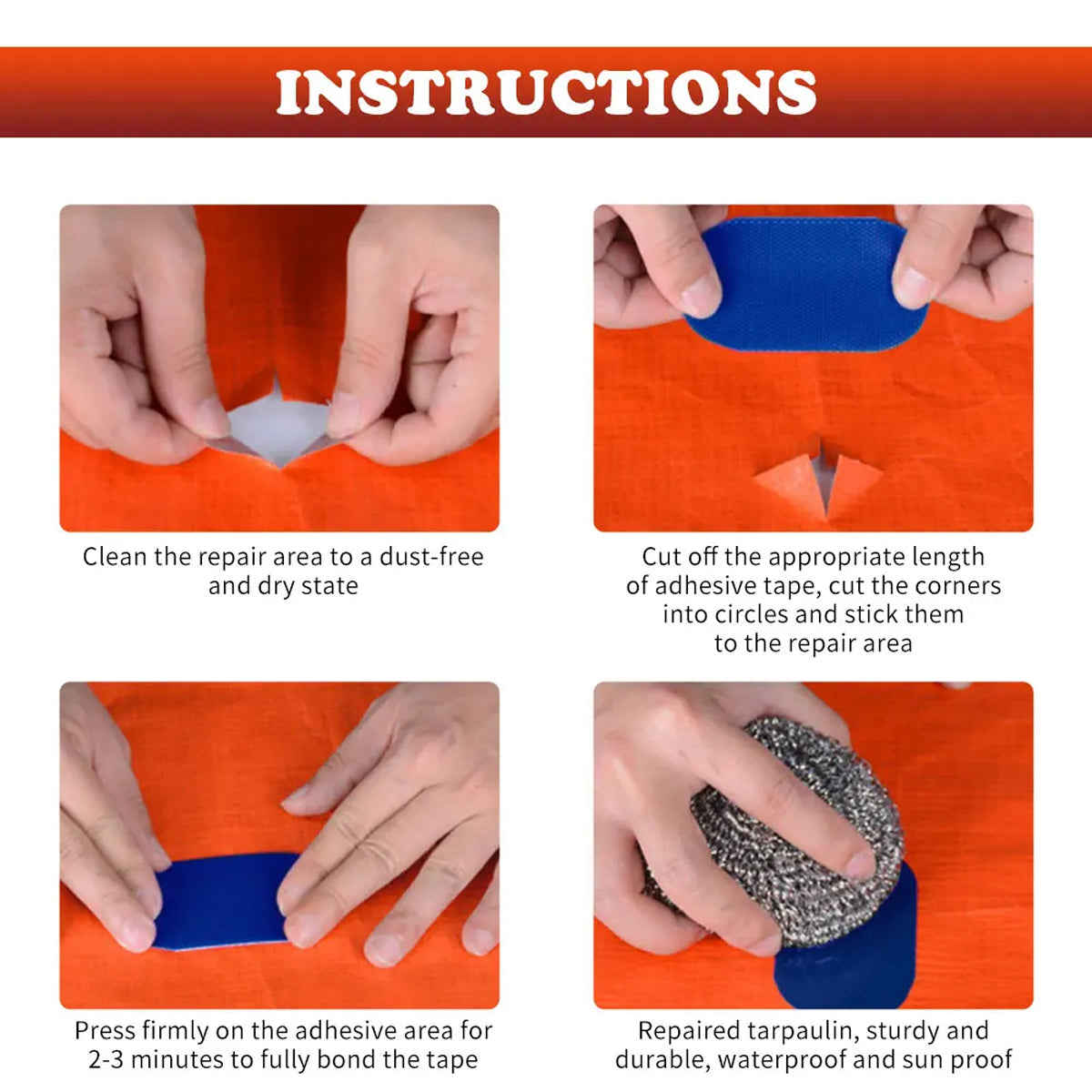 This high adhesive tarpaulin repair tape is specially designed for patching and reinforcing outdoor fabrics like tents, awnings, and tarps. Made from strong knife-scraping cloth material, it delivers excellent waterproof and tear-resistant performance. With multiple width and length options, it is perfect for temporary or permanent repairs on PVC tarpaulins, canvas covers, truck curtains, and more. The tape adheres firmly and is easy to apply, providing reliable protection in outdoor conditions.