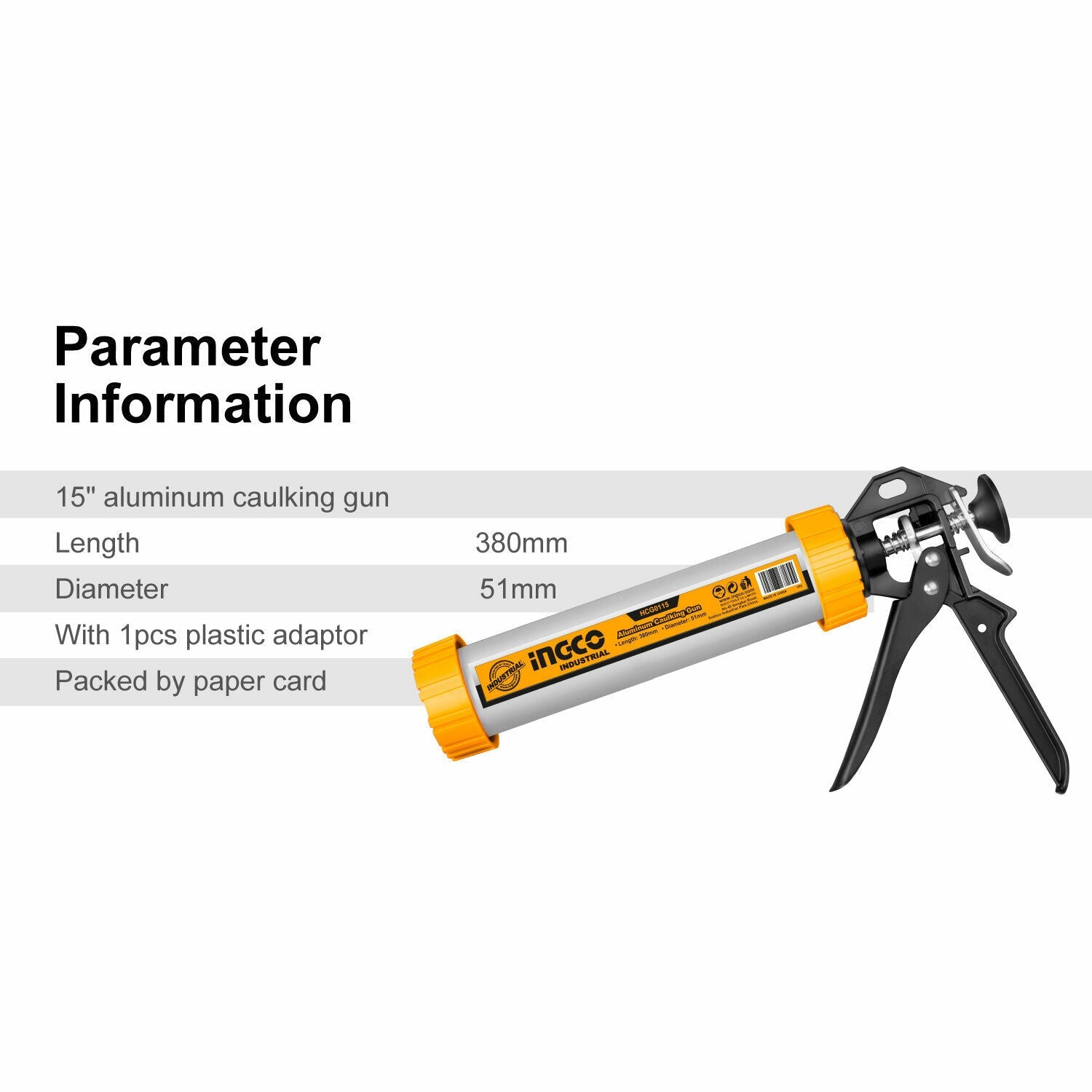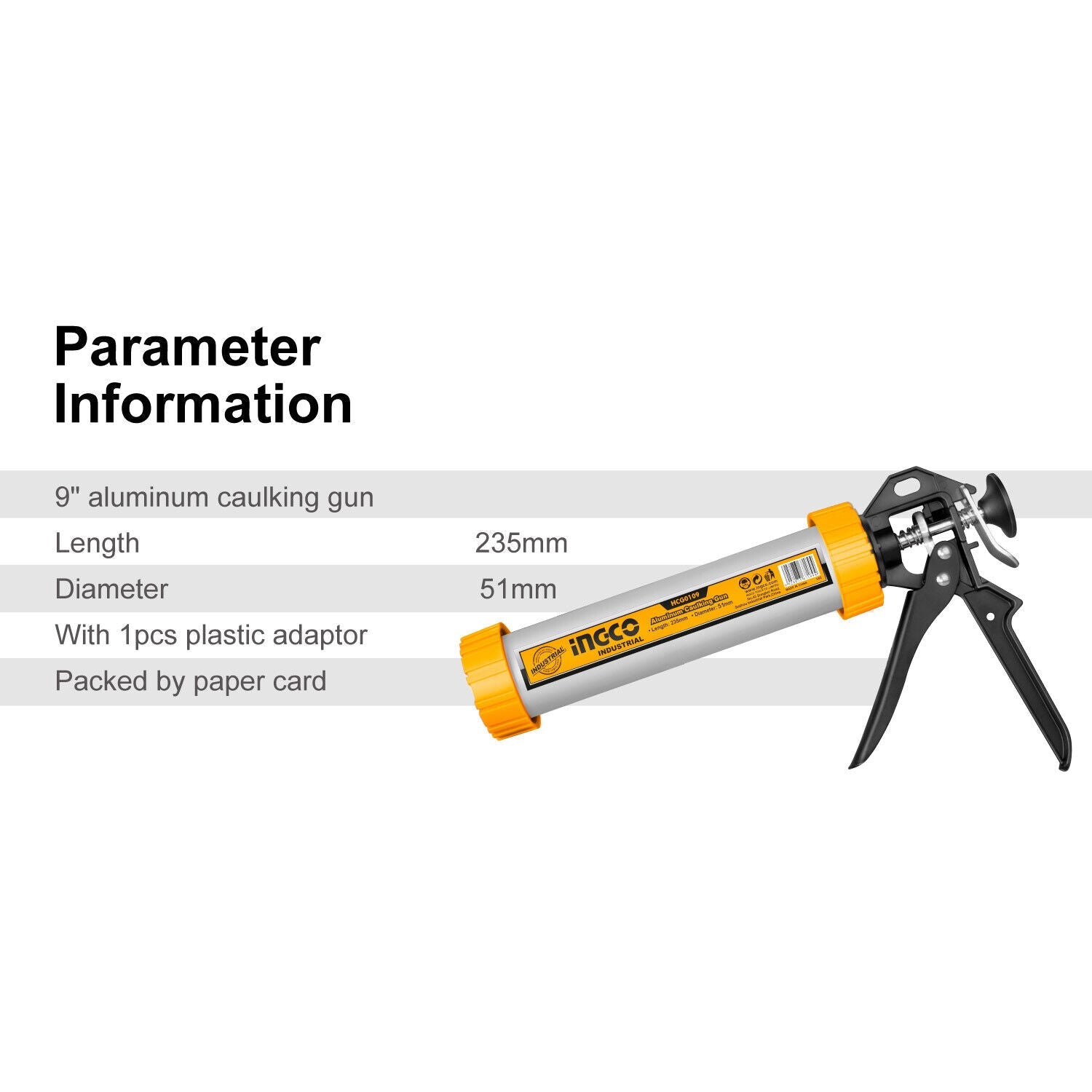 INGCO Aluminum Caluking Gun 9" Sausage Sealing Silicone Sealant Glue