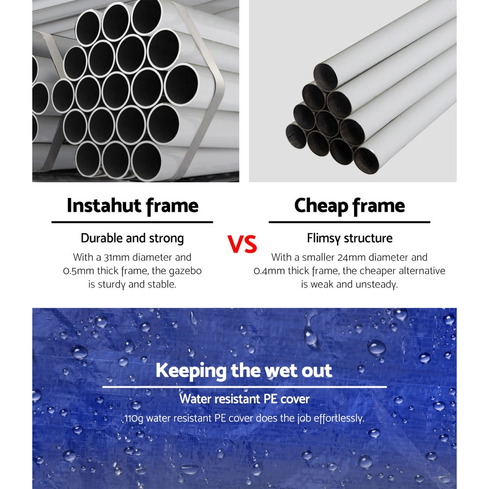 The Instahut Gazebo 3x9 is a versatile and durable outdoor canopy tent perfect for weddings, camping, or any outdoor event. With its blue colour and generous size of 3x9, it offers ample shade and protection from the elements. Constructed with high-quality materials, it will provide long-lasting use for all your outdoor occasions.