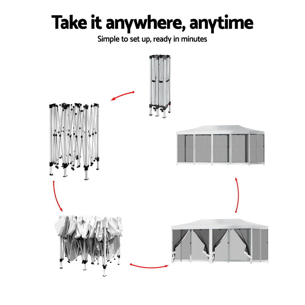 Gazebo Pop Up Marquee 3x6m Wedding Party Outdoor Camping Tent Canopy Shade Mesh Wall White