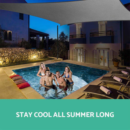 Set sail into the sunset. A simply beautiful experience. Similarly, thats also true with our Shade Sail. Designed to be a permanent covering, our Shade Sail is made from highly breathable 280g/m2 commercial grade 100% polyethylene fabric. This allows cooling air to pass through and help keep the under shade areas well ventilated. The material also blocks up to 98% of harmful UV rays and is all-weather proof to suit Australian climatic conditions. Plus, the material is further enhanced with Americhem UV-resistant additive from the USA to prolong its UV protection effectivenessKeeping the shade in place are marine grade 8mm stainless steel buckles on each corner with a 38mm webbing that provides high durability and extended performance.Unlike other shade sails that compromise on quality and cost, our Shade Sail takes shading seriously and will not settle for inferior materials or components. Especially when your safety is one of our major concerns.