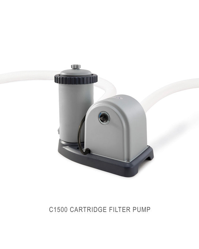 - Includes a 220-2400V Krystal Clear™ cartridge filter pump, pump flow rate: 1,500 Gph