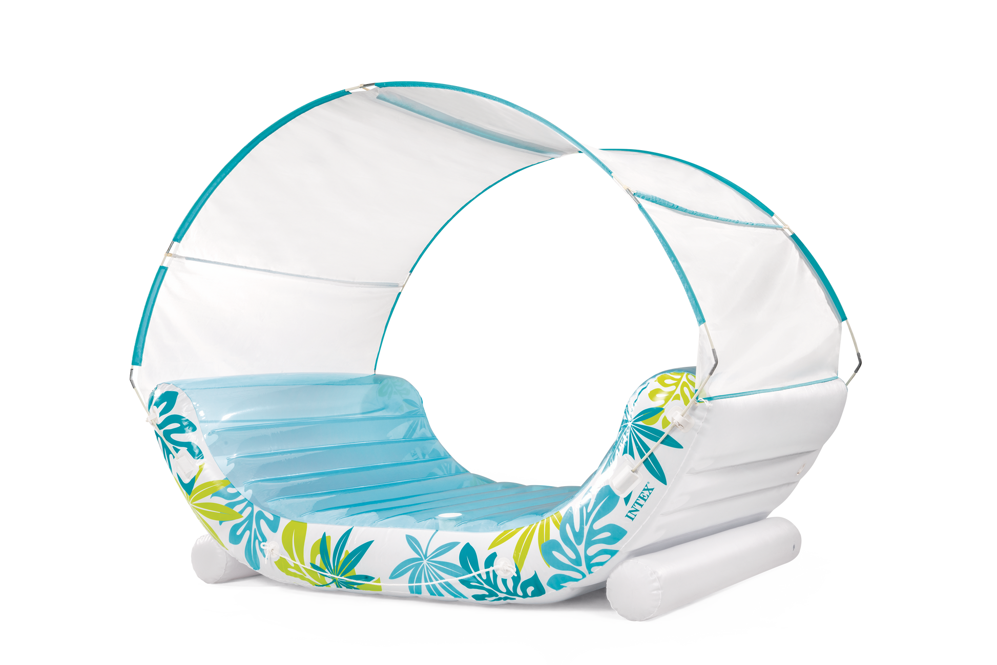 Share the stylish serenity of this floating oasis. Stay cool with the canopy or easily remove it for optimal fun in the sun. As with any proper lounge, there's space to keep your drink handy.