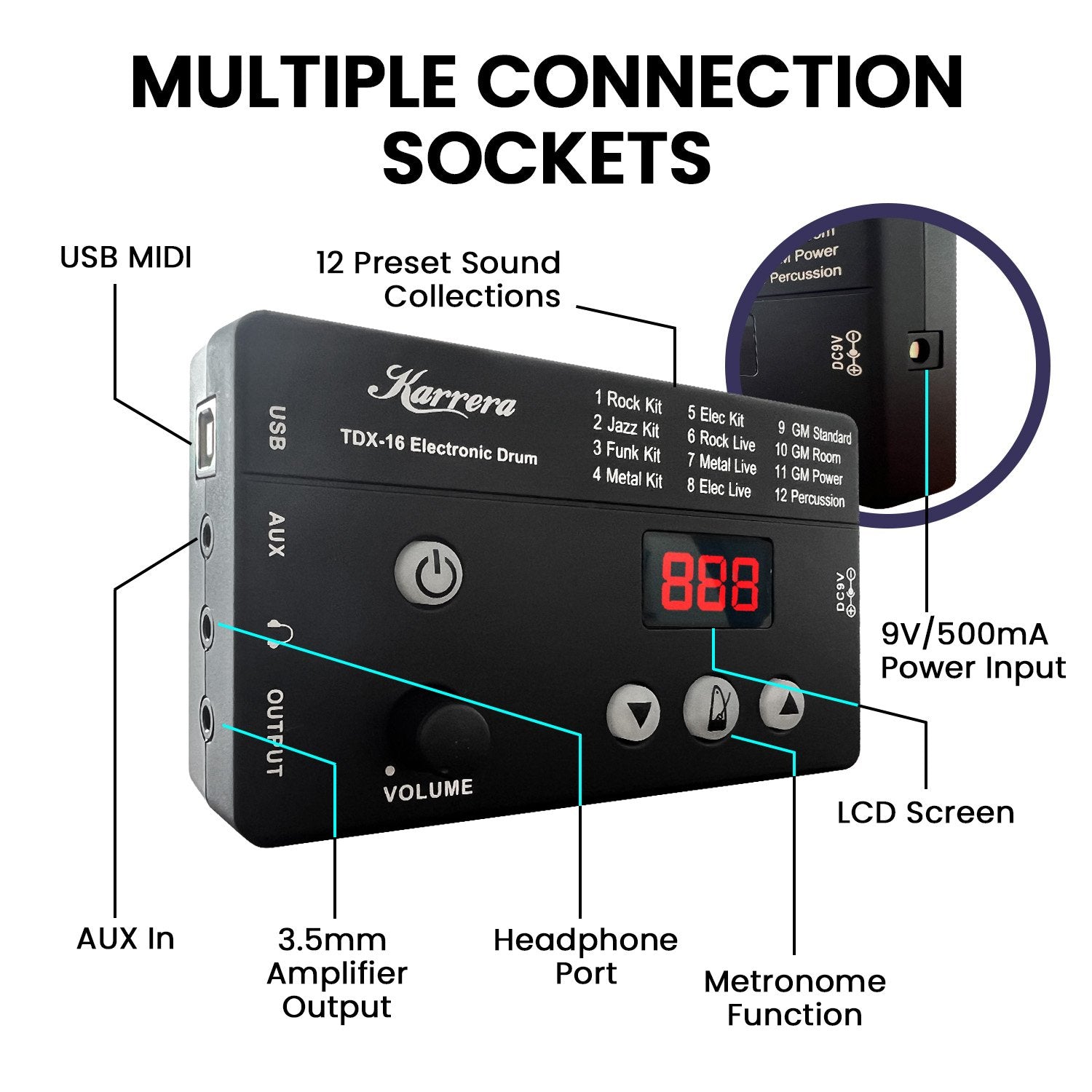 With durable assembly pipes, rods, joints, cables, drumsticks, a stool and headphones included, the TDX-16 Karrera Electronic Drum Kit is definitely an upgrade to any drummer!