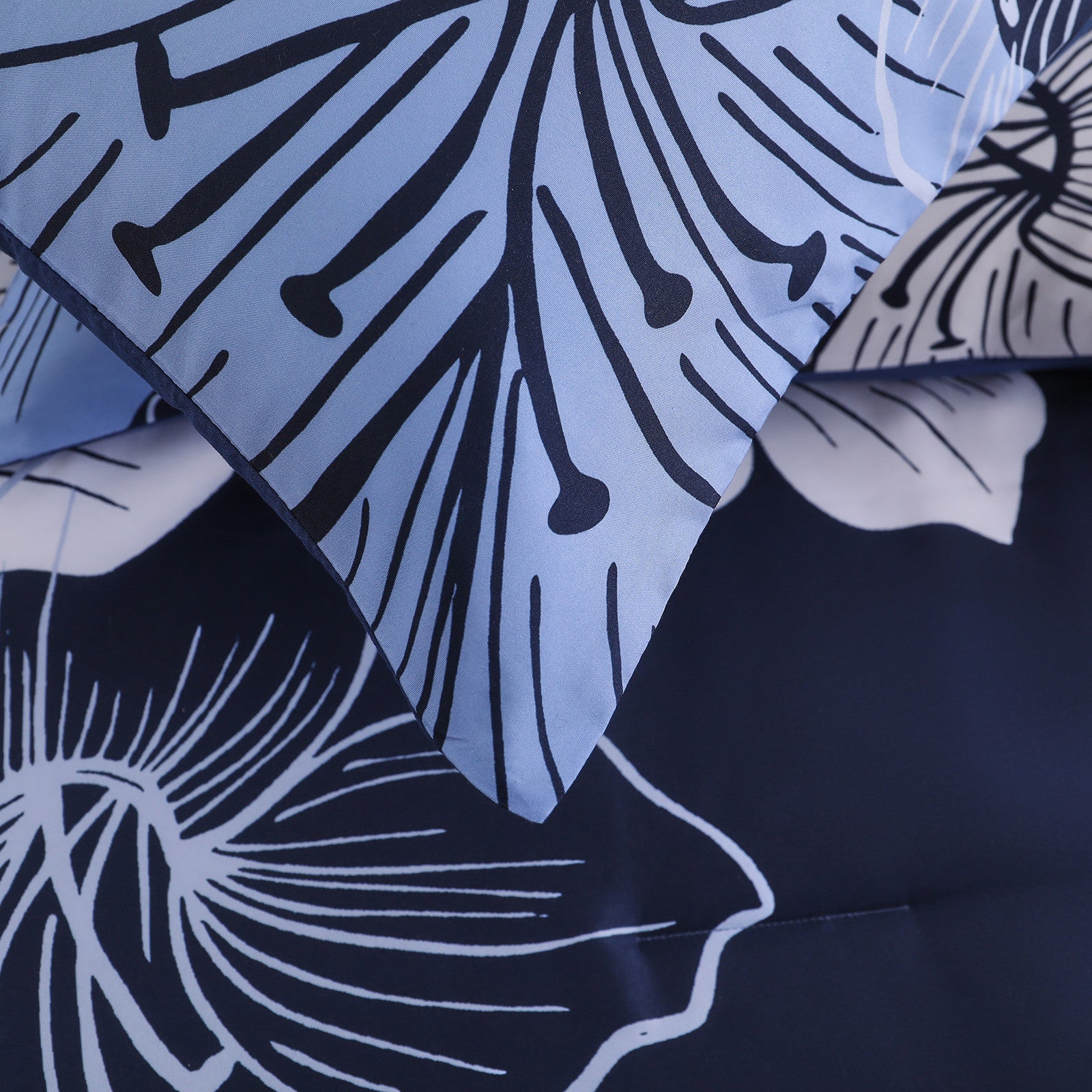 King Comforter Set, Navy Blue Floral 3-Piece Bedding, Soft Microfiber for All Seasons