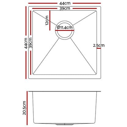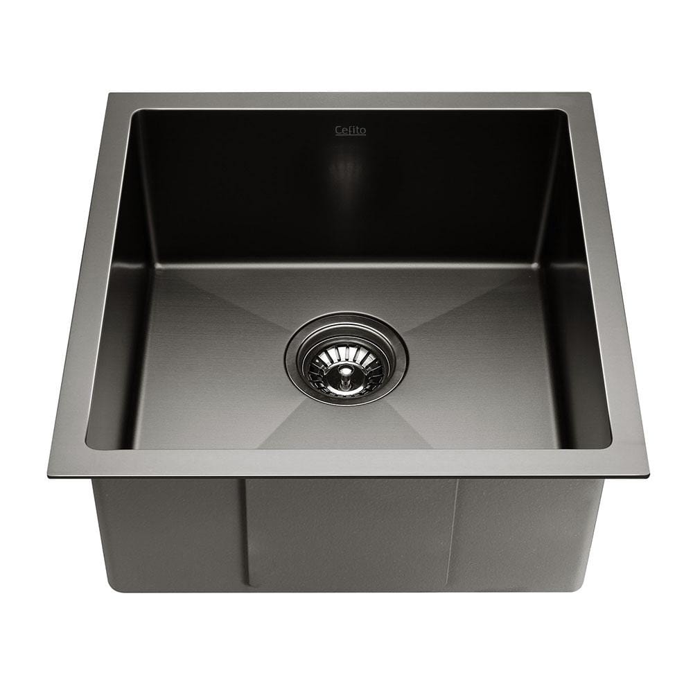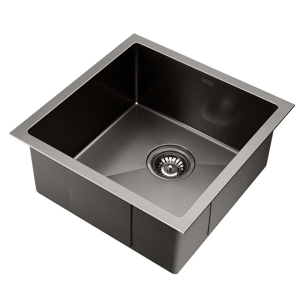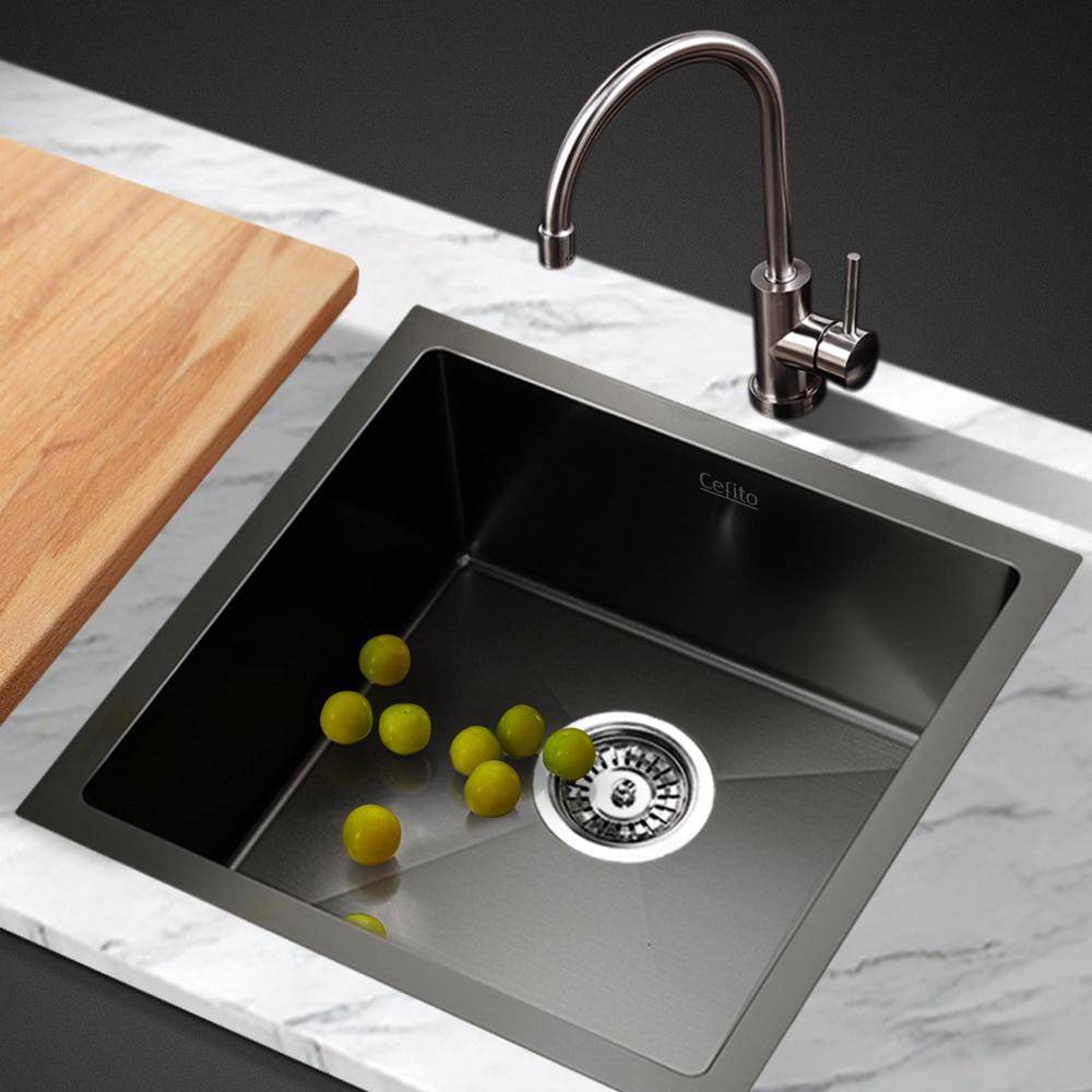 Cefito Kitchen Sink 44X44CM Stainless Steel Basin Single Bowl Black