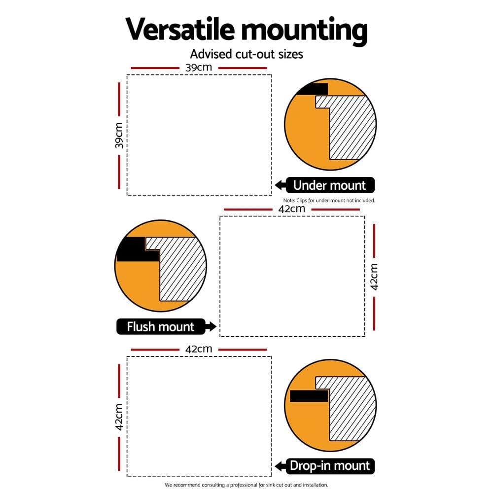 Suitable for under-mount, flush-mount, and drop-in mount