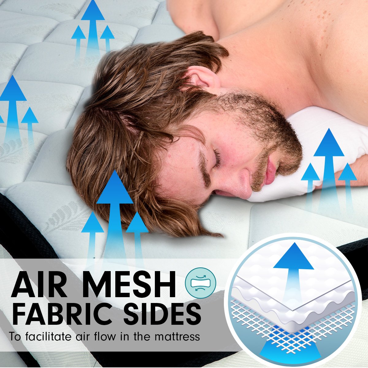 - Air mesh fabric sides to facilitate air flow in the mattress
