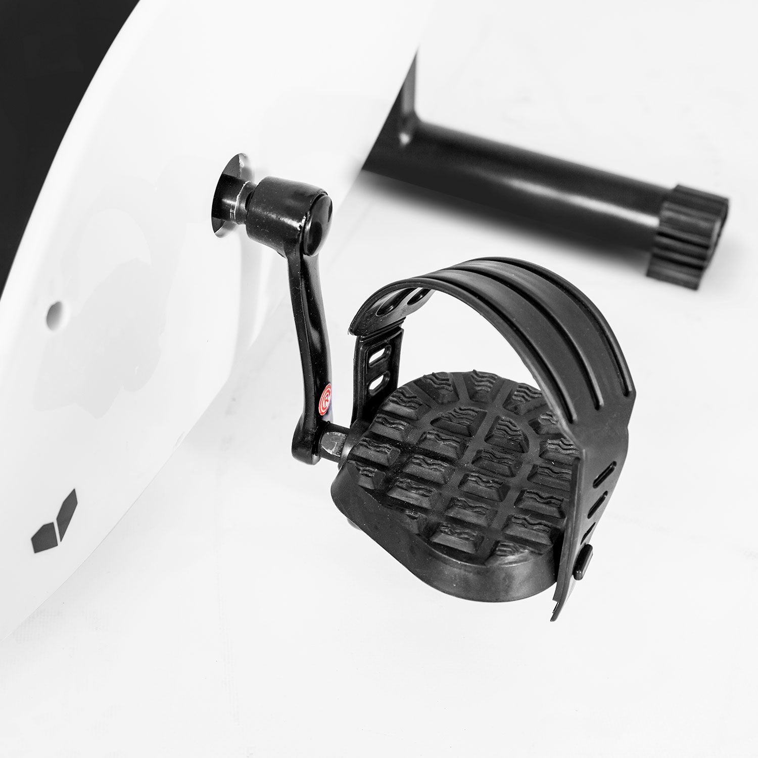 Three piece crank Seat: N/A Pedals: Includes foot straps to secure footing during exercise Features: Smooth and silent belt transmission TECHNICAL Frame: Tubular Steel Maximum user weight: 100kg Assembly Required: This product comes partially assembled in a box with assembly instructions included.