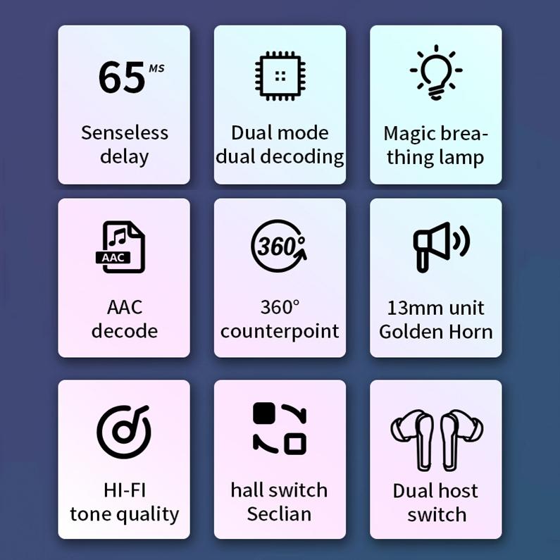 Low Latency Wireless Bluetooth Game Earphones with Colourful Lights - Digital Display