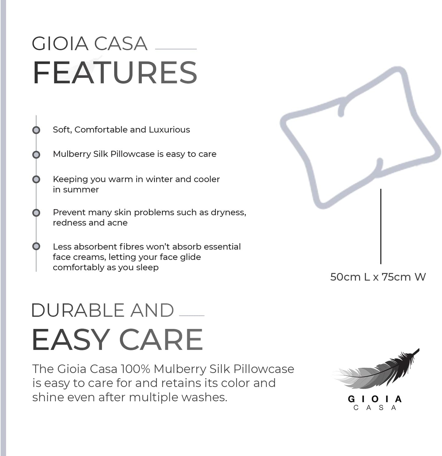 Gioia Casa Luxury Pillowcase - 100% Pure Mulberry Silk on Both Sides - Soft Anti-Wrinkle, Hypoallergenic, Washable Bed Pillowcases - Premium Pillow Cover for Hair and Skin Protection
