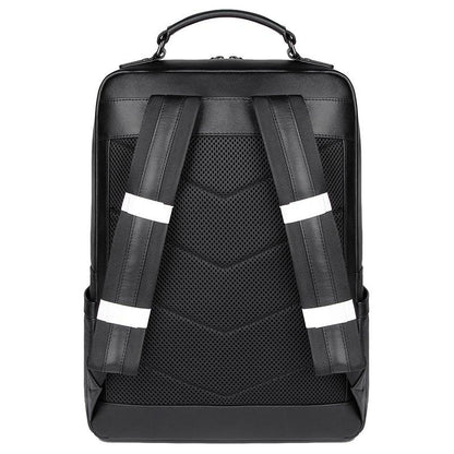 Men Black Cowhide Leather Backpack for Casual Business with Laptop Compartment
