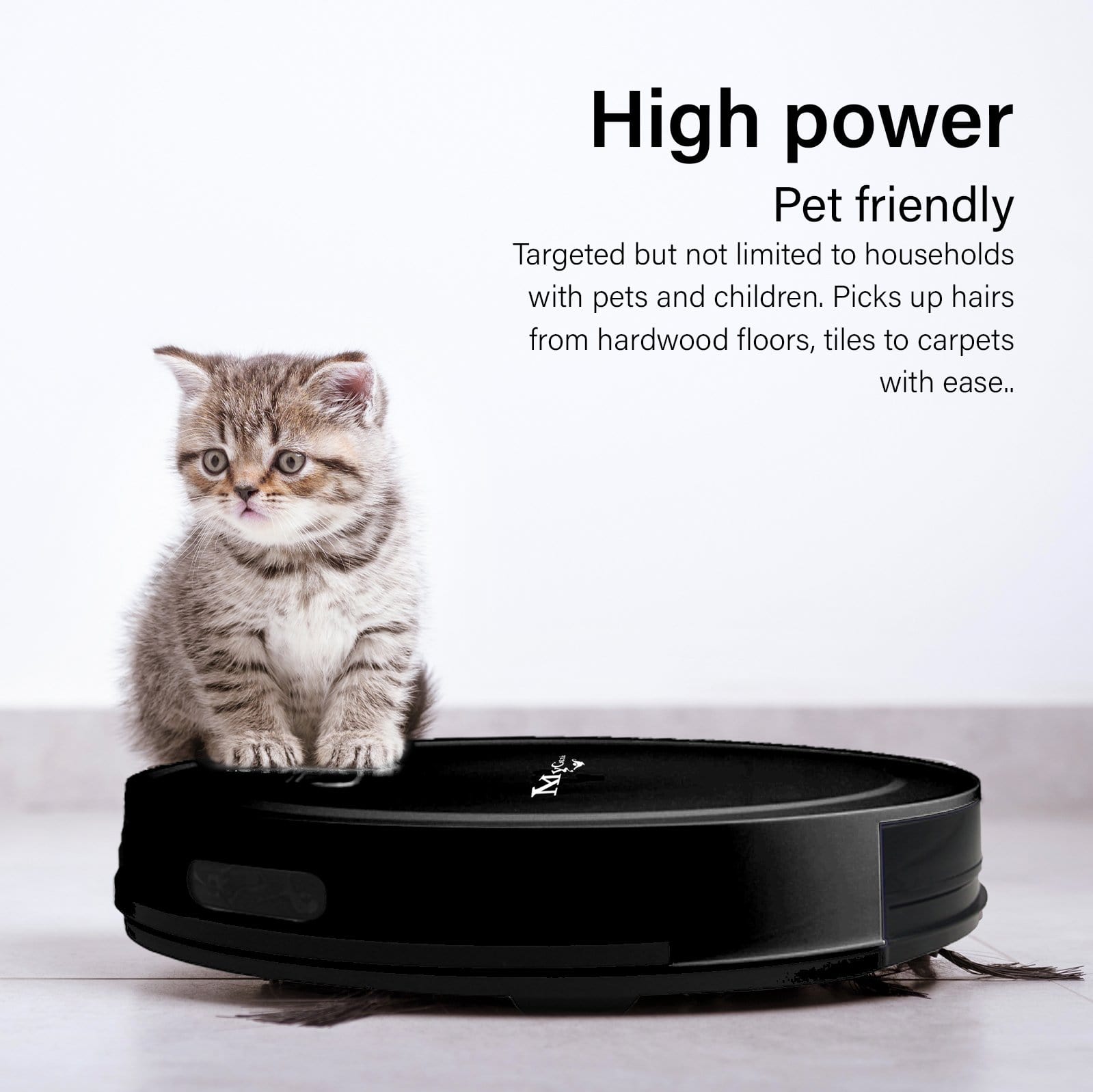 The vacuum features intelligent roaming sensors, dual side brushes and has a powerful suction that all contribute to producing a deeper, more thorough, and more sanitizing clean along every edge and in every difficult corner, picking up debris and adjusting its power to suit different floor environments.