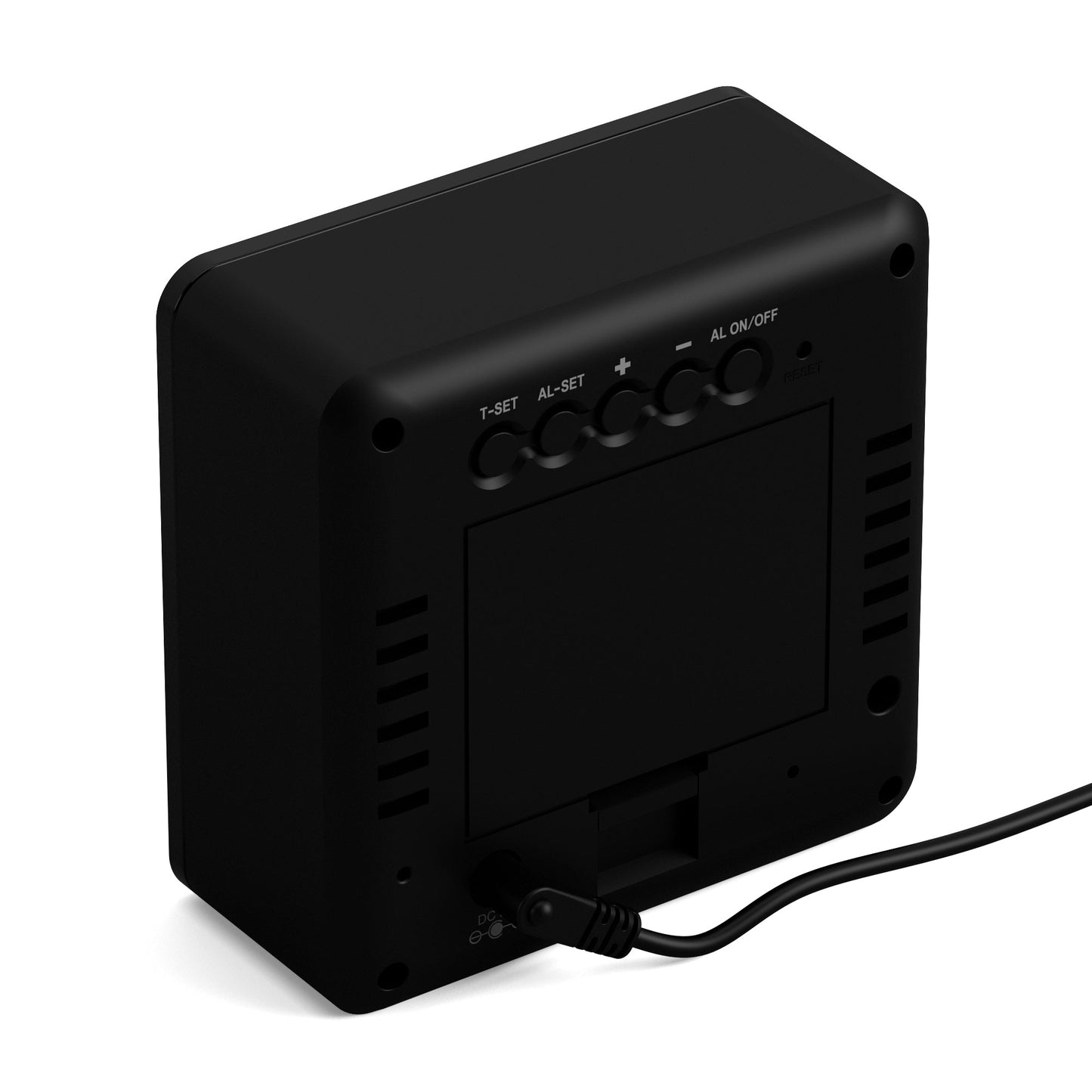 This alarm clock is the perfect addition to the bedside with its sleek, modern square case and stand-out LED dial.