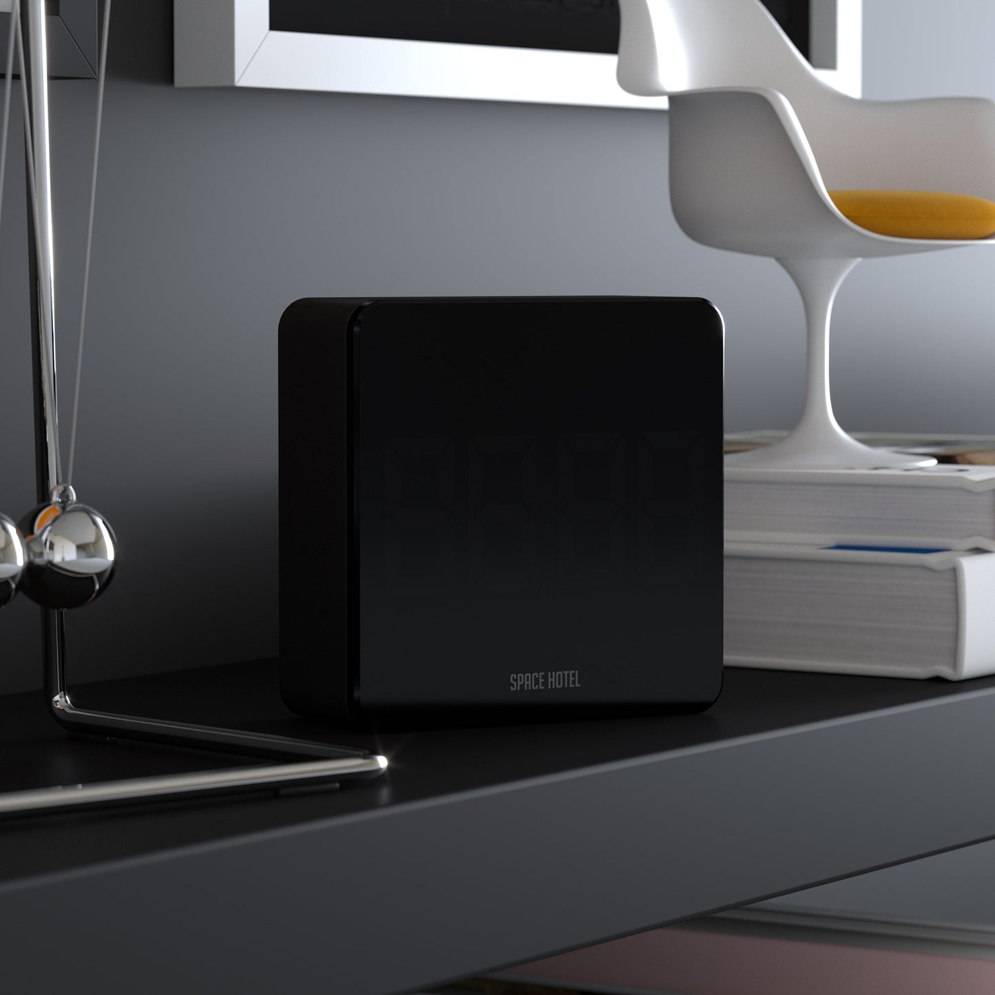 Newgate Space Hotel Orbatron Alarm Clock Black Case - Black Lens - Orange Led