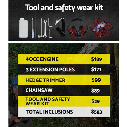 Giantz 40CC Pole Chainsaw Hedge Trimmer 12in Chain Saw 4-Stroke 4.3m Long Reach