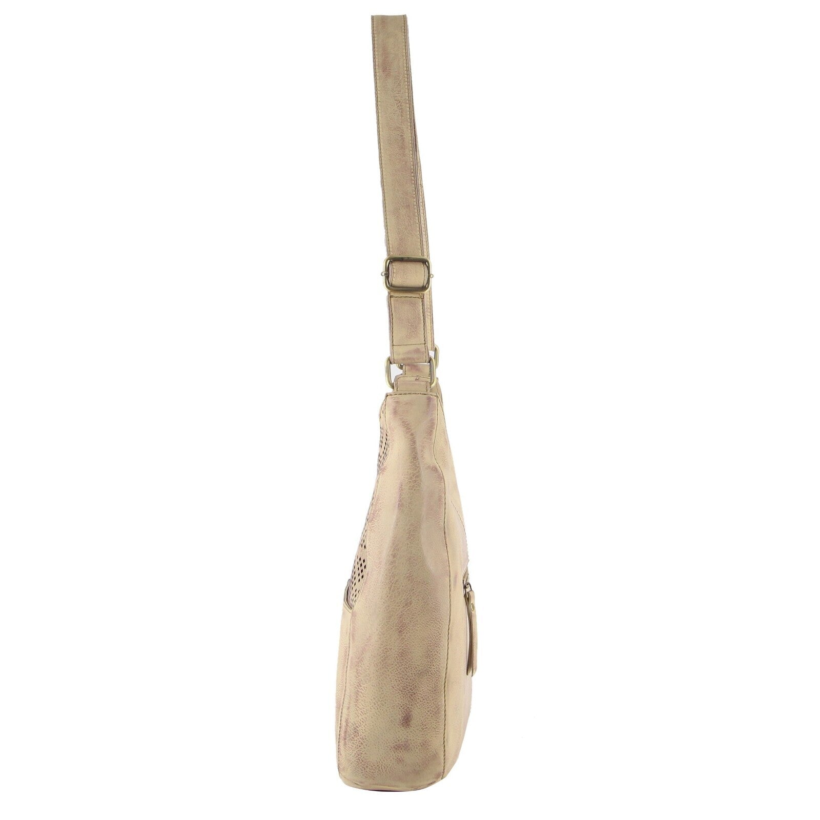Pierre Cardin Womens Italian Leather Bag Perforated Cross Body Travel - Latte