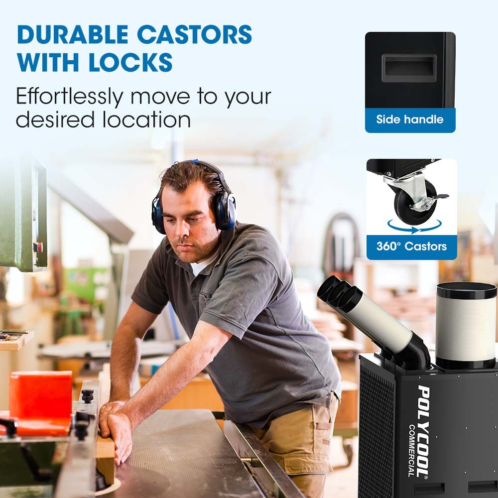 POLYCOOL 6.5kW Portable Industrial Spot Cooler, with Triple Cooling Ducts, 15A Plug