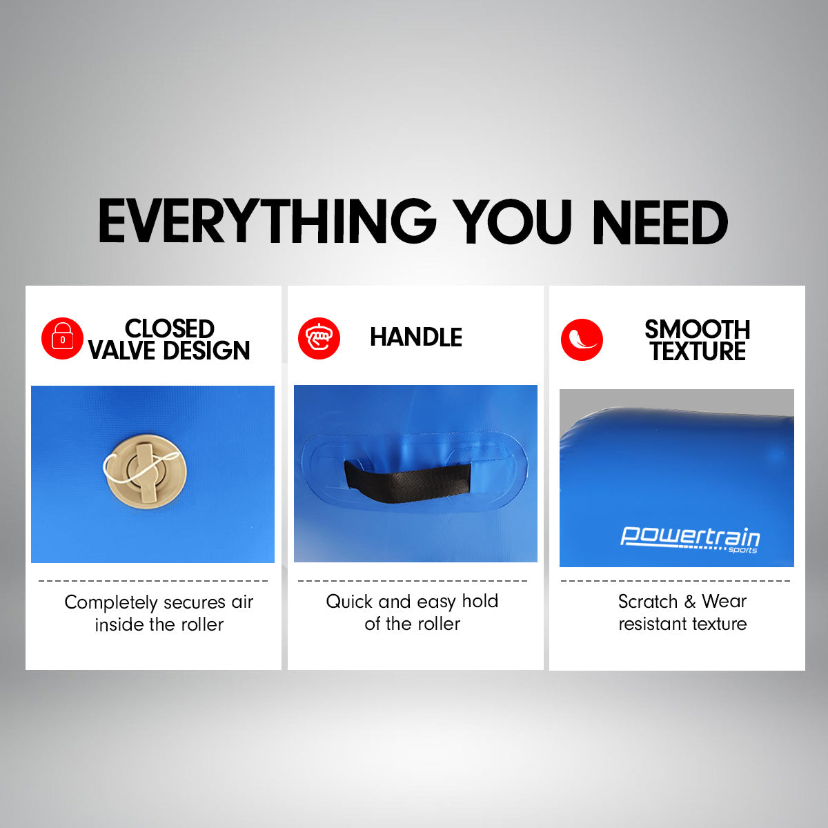 Powertrain Sports Inflatable Gymnastics Air Barrel Exercise Roller 120 x 75cm - Blue