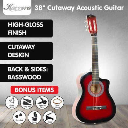 Pro Cutaway Acoustic Guitar with guitar bag - Red Burst Karrera 38in
