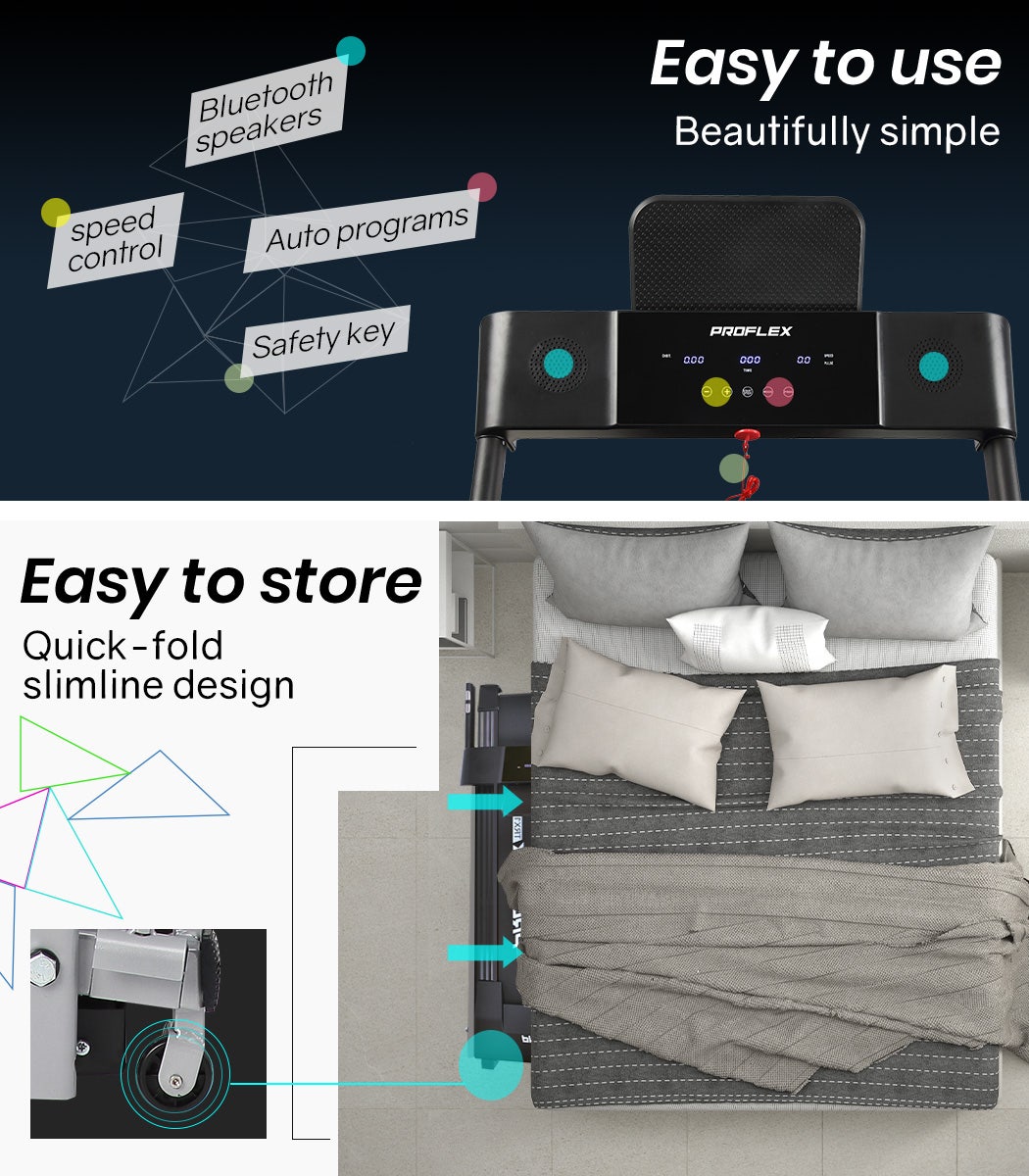 PROFLEX Treadmill Bluetooth Running Machine Foldable Compact Small Home Electric