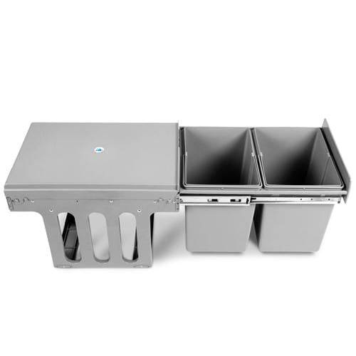 With a 15-liter capacity for each plastic waste bin, the Pull-Out Bin comes in compartments with lids that allow you to separate your waste from each other as well as from your recycling items. Included too is a bench frame to hang any plastic waste bag if required.