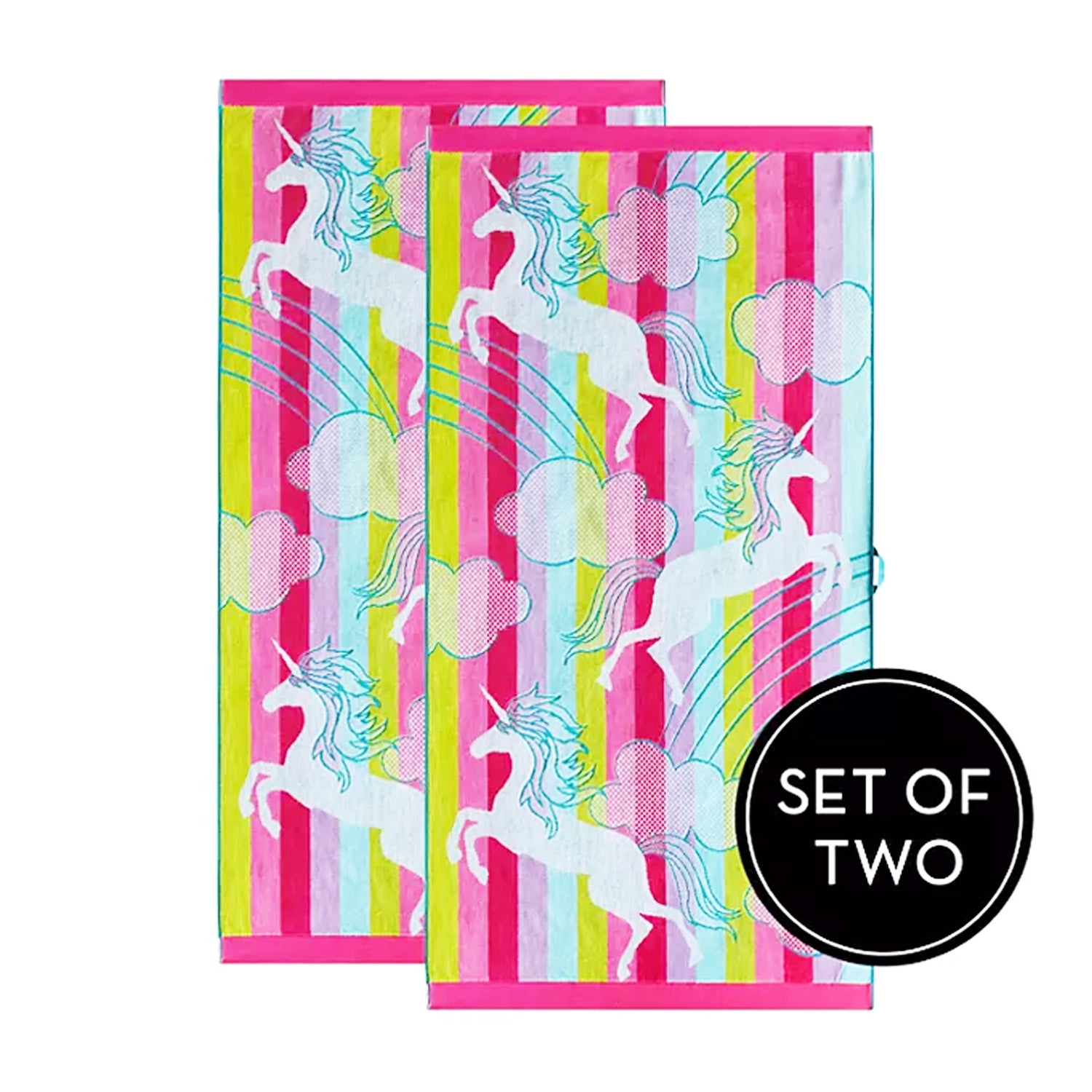 Renee Taylor 2 Pack Jacquard Velour Kids Beach Towel 75 x 150 cms Unicorn Rainbow