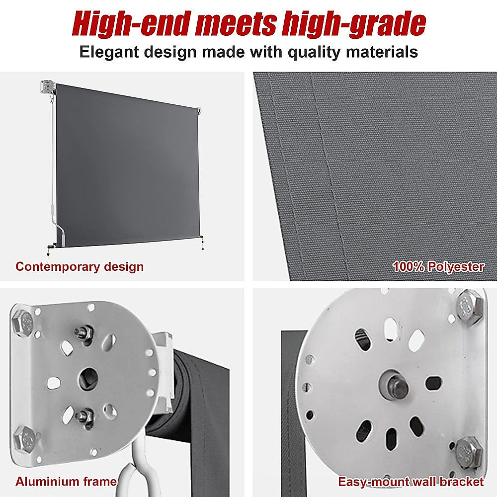 Retractable Straight Drop Roll Down Awning Garden Patio Screen 2.1X2.5M