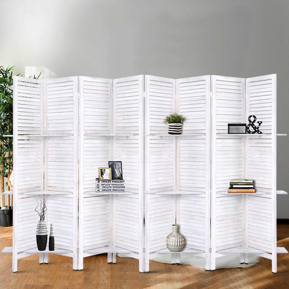 Room Divider Screen 8 Panel Privacy Foldable Dividers Timber Stand Shelf