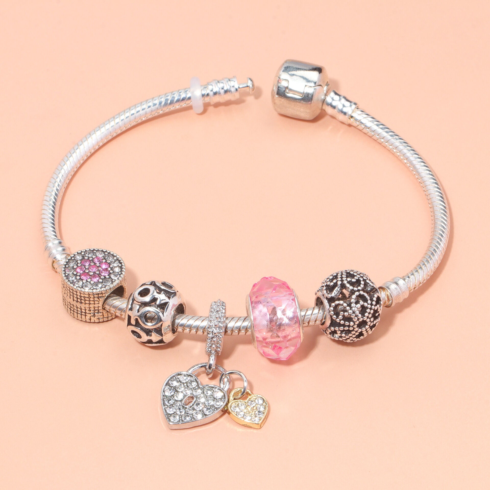 1. Material Craft: Made of zinc alloy with electroplating, ensuring durability and a shiny finish. 2. Design Style: Features rose gold petal zircon and various charms, presenting a fresh, sweet, and unisex look. 3. Size Options: Available in 18, 19, 20, and 21 cm to fit different wrist sizes. 4. Versatility: Suitable for daily wear, parties, and as a gift, matching various outfits. 5. Unique Charms: Intricate designs like heart locks and patterned beads add a personalized touch. |