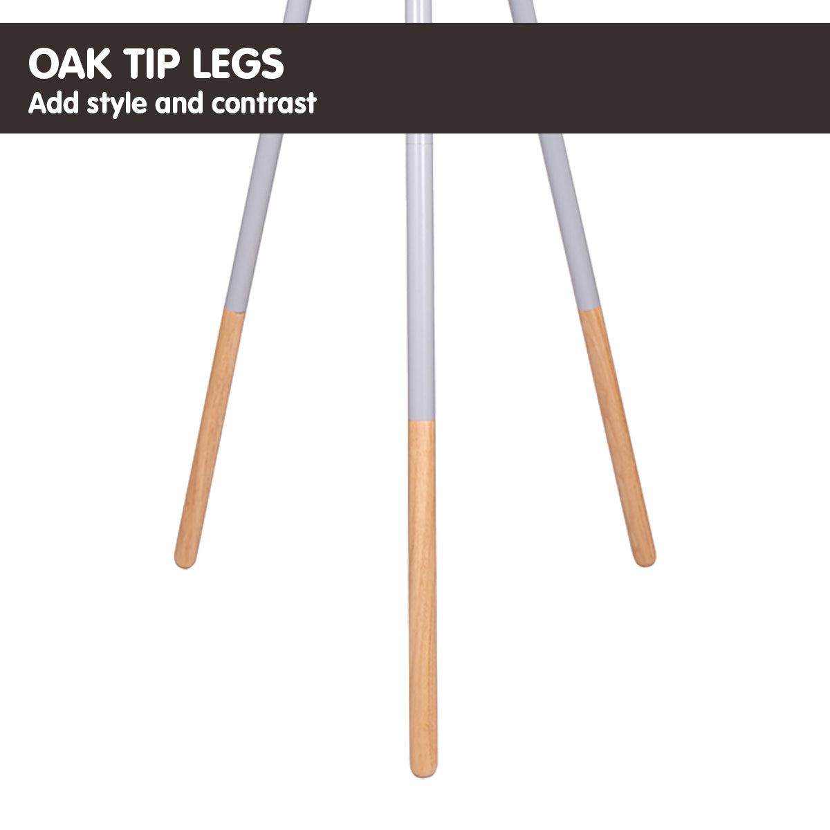This floor lamp features a timeless tripod base, delivering versatile style options. Its grey painted metal legs paired with a fabric drum shade complement both contemporary and modern interiors, while the eco-friendly rubberwood tips add a subtle warmth that suits urban, casual, or updated lodge decor. Designed with a compact footprint, this elegant lamp emits ample light without taking up much space. Perfect for various areas such as corners, entryways, or beside beds, it combines functionality