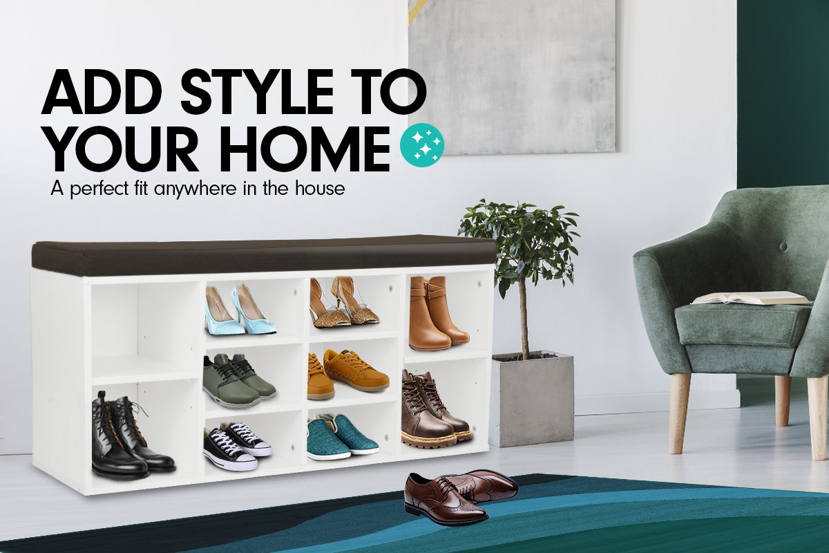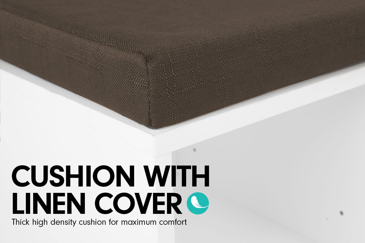 Sarantino Shoe Rack Cabinet Organiser Brown Cushion Bench Stool - 104 X 30 X 45 - White