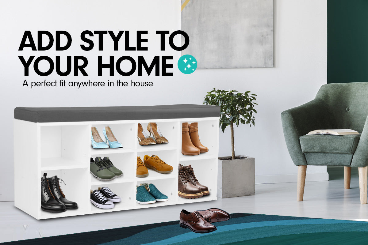 With the capacity to store up to 10 pair of shoes, the MDF material Shoe Cabinet is also a convenient cushioned bench for you to sit and wear or remove your shoes with ease. It also adds a modern touch to your hallway decor while keeping it neat and clutter-free.
