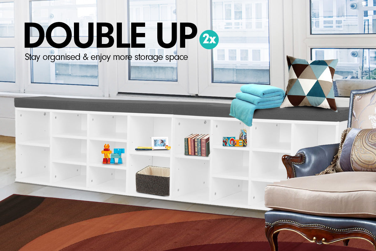 Sarantino Shoe Rack Cabinet Organiser Grey Cushion Sttol Bench Ottoman - 104 X 30 X 45 - White