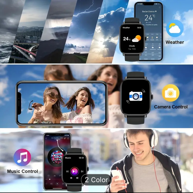 Split – screen app, 3D dynamic dial, weather, raise wrist to wake watch, alarm, stopwatch, find my device, calculator, etc.