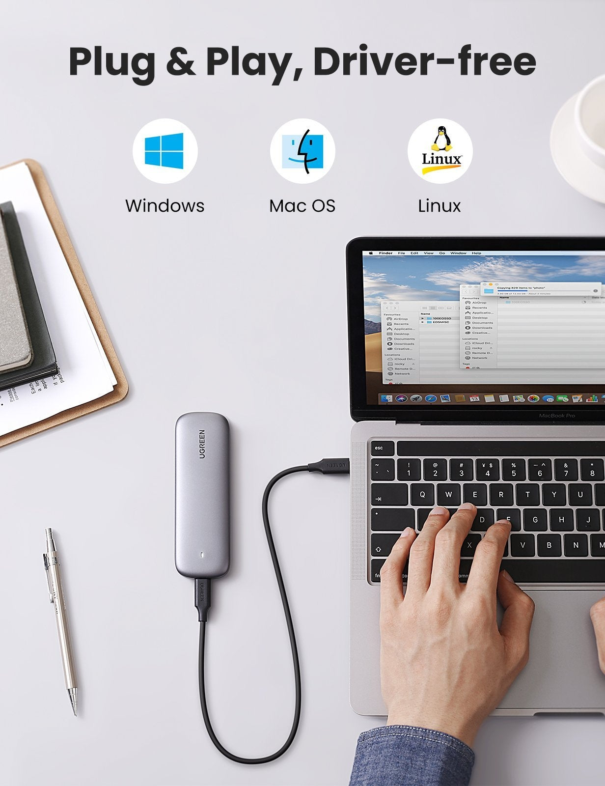 USB C 3.1 Gen2 interface and comes with a 0.5m USB-C to USB-C cable. Work straight with USB-C/Thunderbolt 3 laptops & desktops or OTG enabled phones/tablets, compatible with MacBook 2016, MacBook Pro 2017, MacBook Air 2018, Samsung Galaxy Tab S4 10.5/S8/S9, Lenovo XPS 15/13, Google Pixelbook, Acer Chromebook R11.