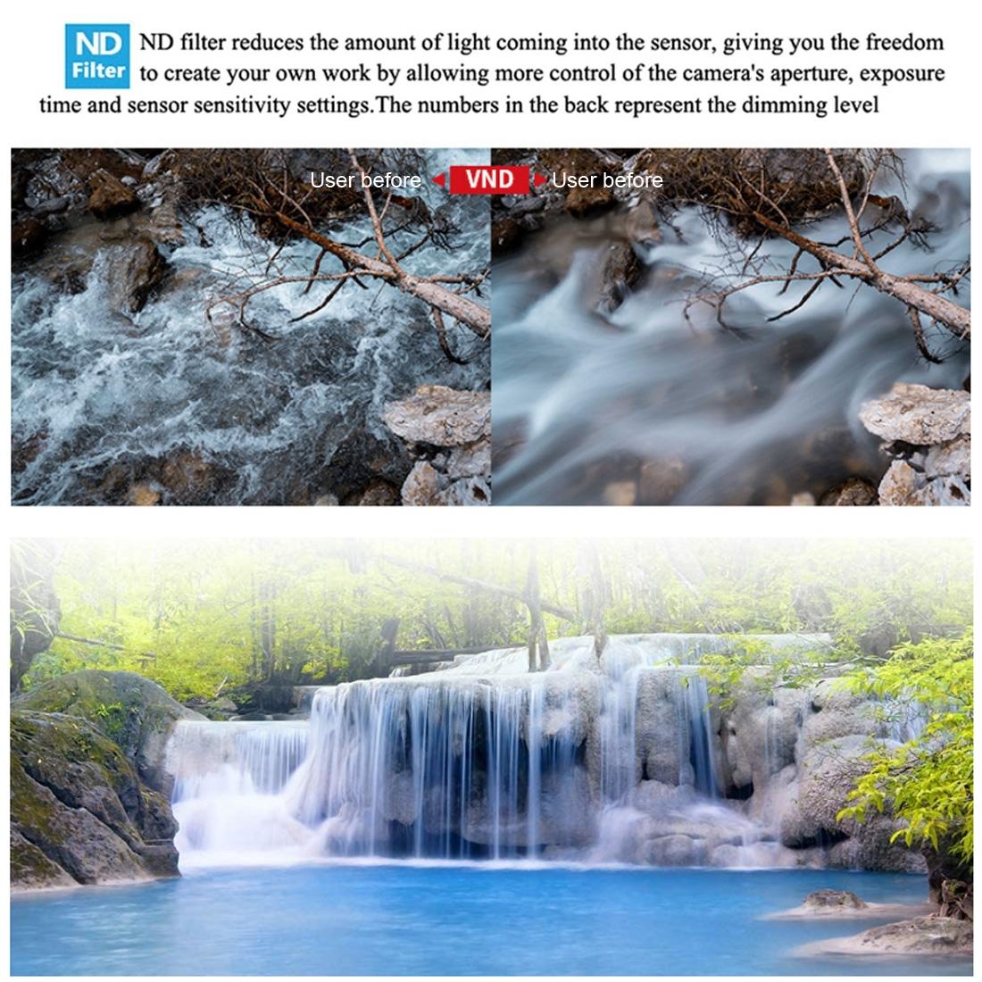 • 2-5 stop which also represents ND2 to ND32 is for a normal day condition covering your needs from cloudy days to a normal sunny day.