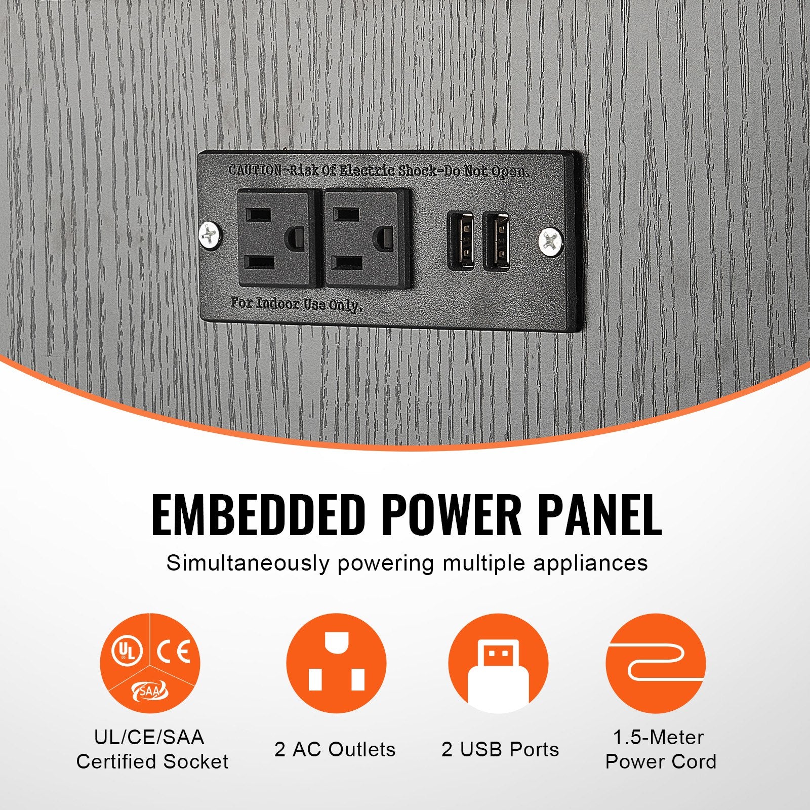 The built-in power strip for the fish stand comes with 2 AC outlets and 2 USB ports, allowing simultaneous use of multiple tools. The 1.5m cable ensures power is readily available whenever you need it.