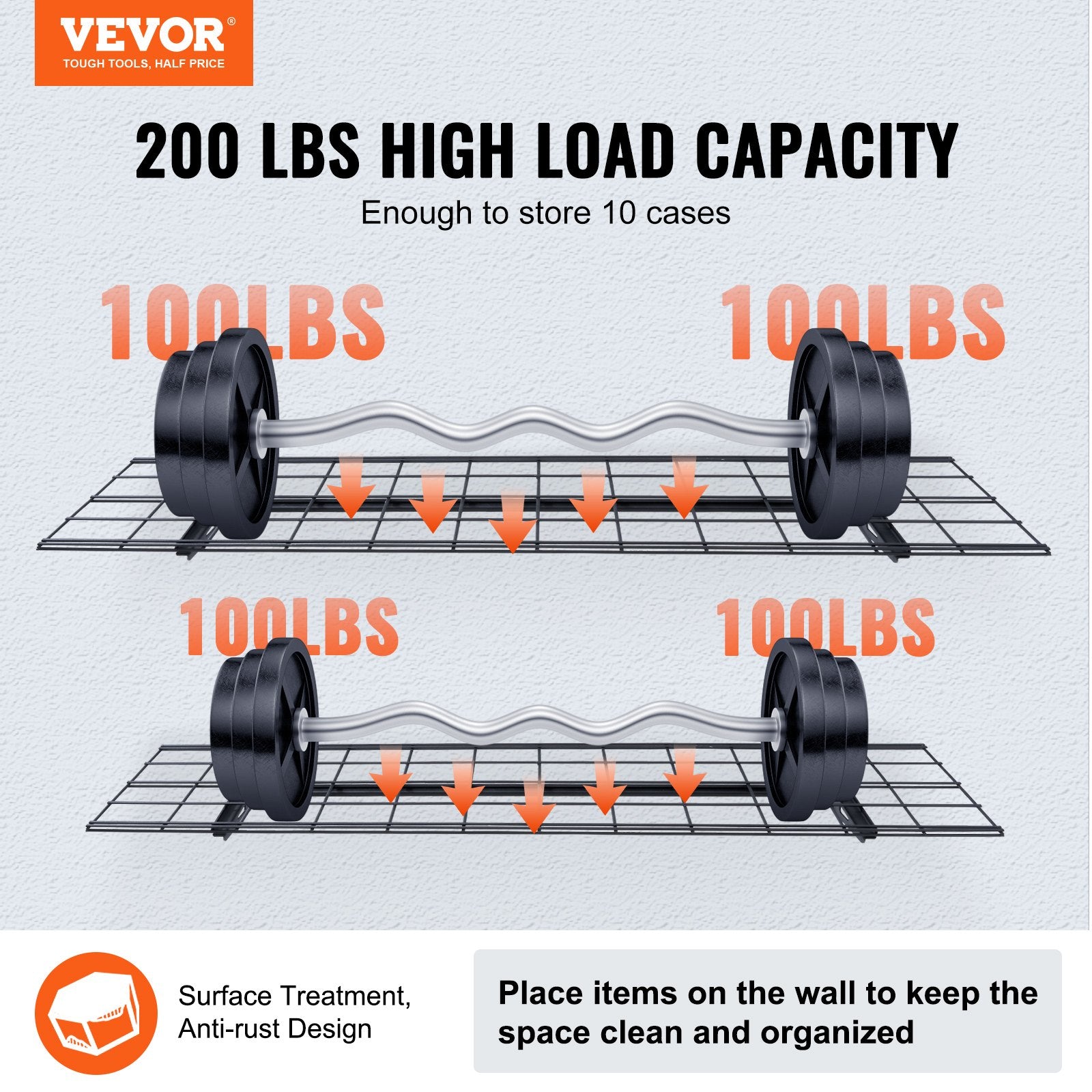 Still struggling to find a place for your tools or dealing with clutter everywhere? VEVOR garage hanging shelves are perfect for organizing screwdrivers, handheld power tools, batteries, and chargers. Create a clean and tidy workspace, making you feel more comfortable and productive.