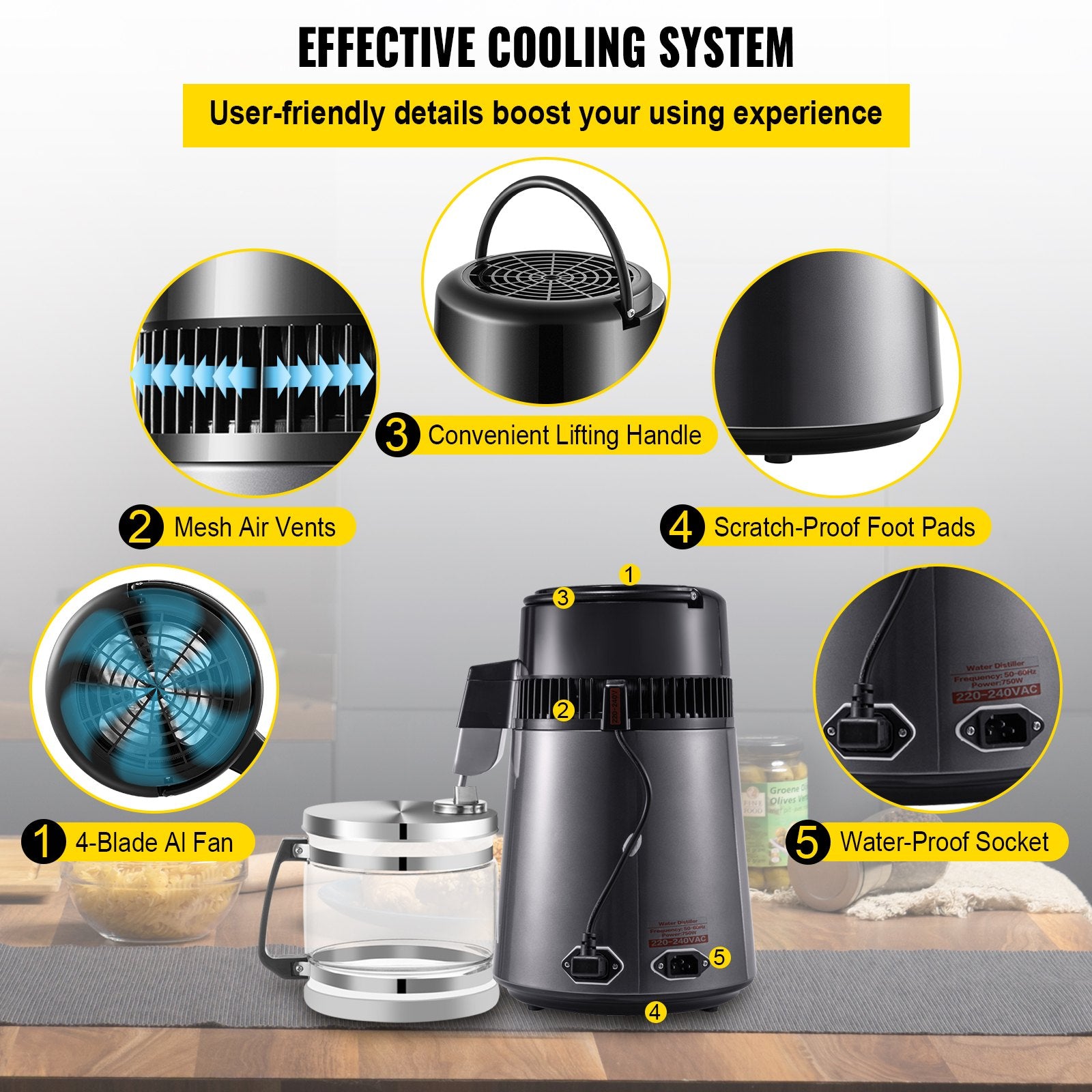 Home Water Distiller Distilled Water Maker 4 L with Dual Temp Display Grey