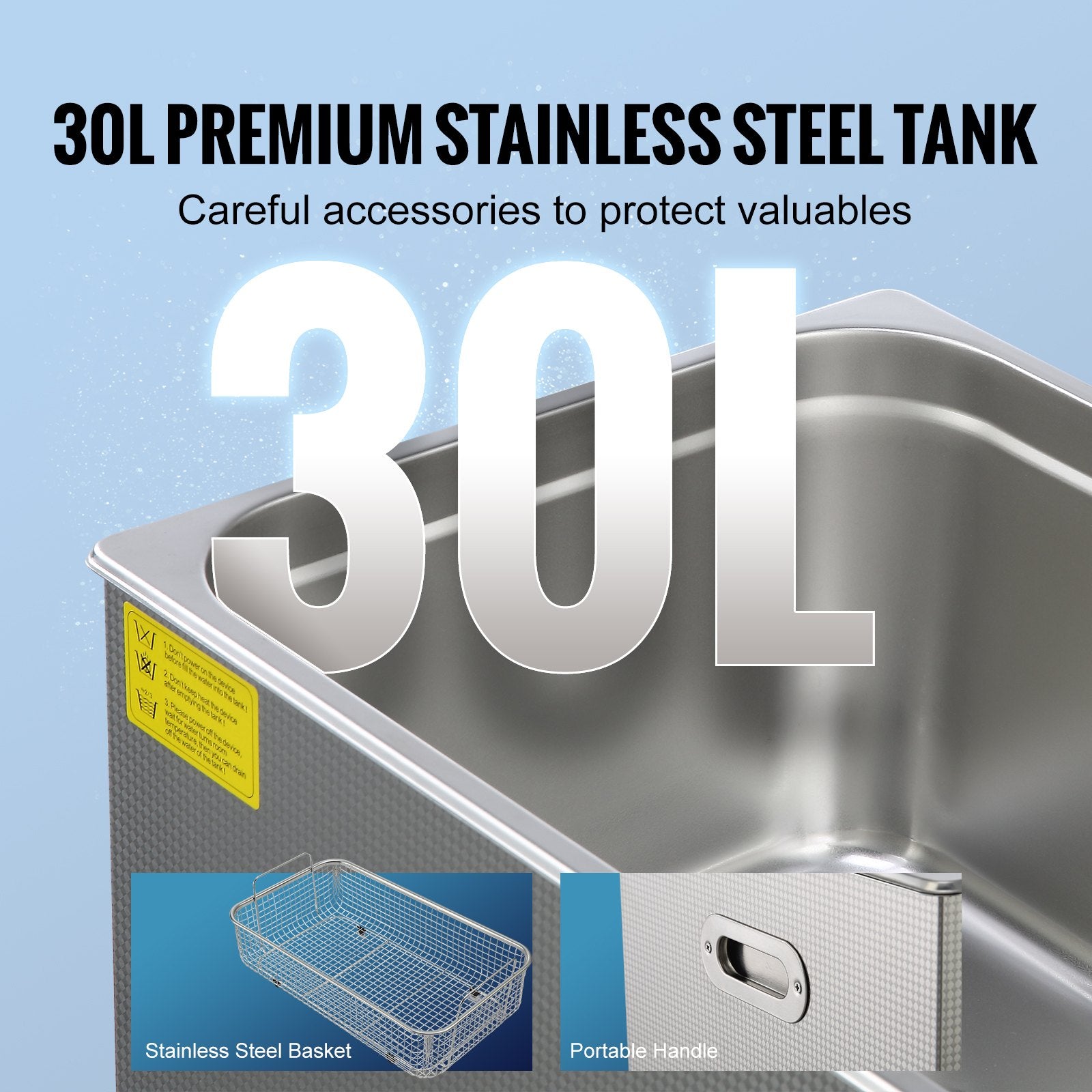 Ultrasonic Cleaner with Digital Timer & Heater, Professional Ultra Sonic Jewelry Cleaner, Stainless Steel Heated Cleaning Machine for Glasses Watch Rings Small Parts Circuit Board (30L)